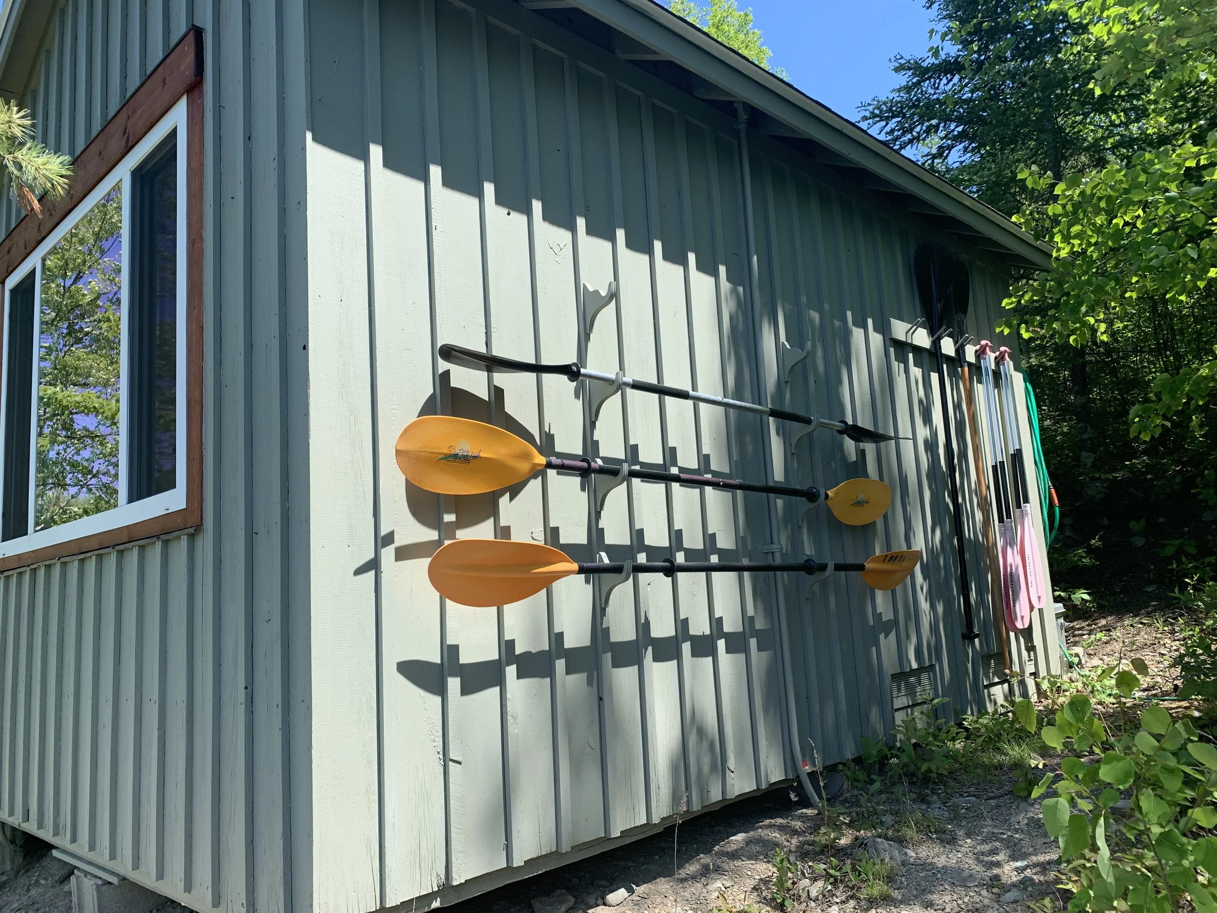 SAUNA Our sauna is one of the first buildings Norm built on the property and is in the style of an authentic Finnish design. It is complete with the original wood- burning stove which is stoked from the outside.